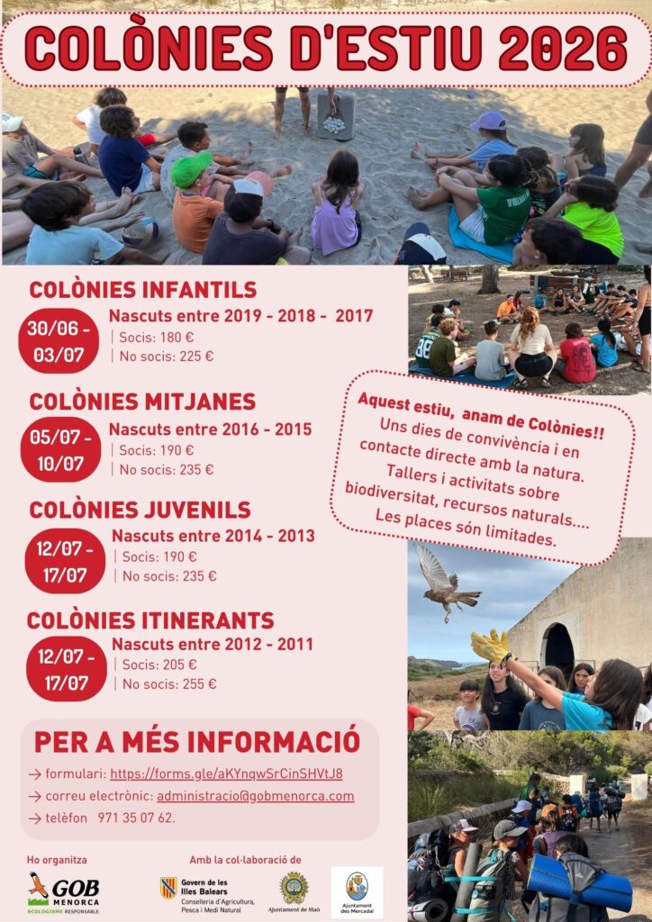 This initiative is organised by the Environmental Education area of GOB Menorca, with the collaboration of the Ministry of Agriculture, Fisheries and Natural Environment and the town councils of Maó and Es Mercadal.